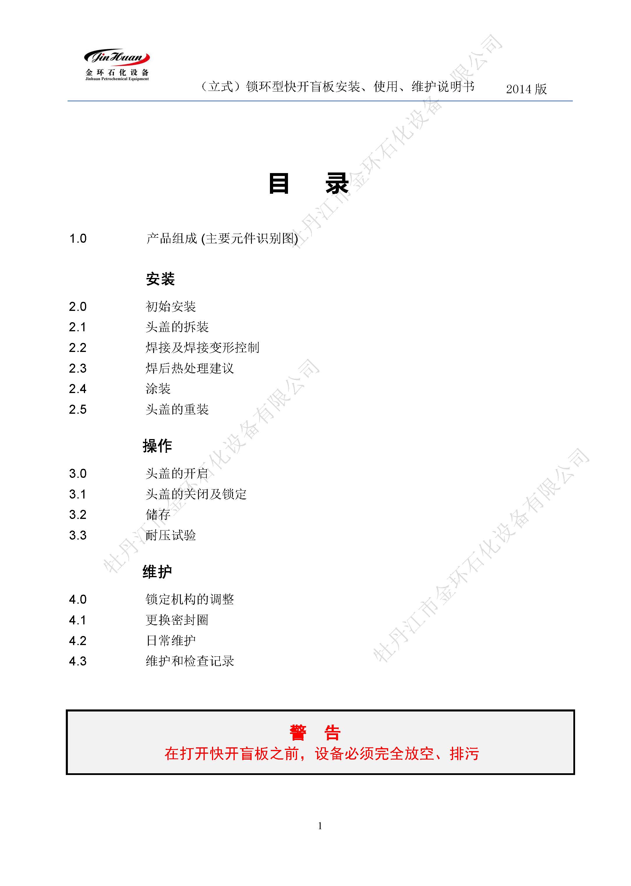快開(kāi)盲板使用說(shuō)明書