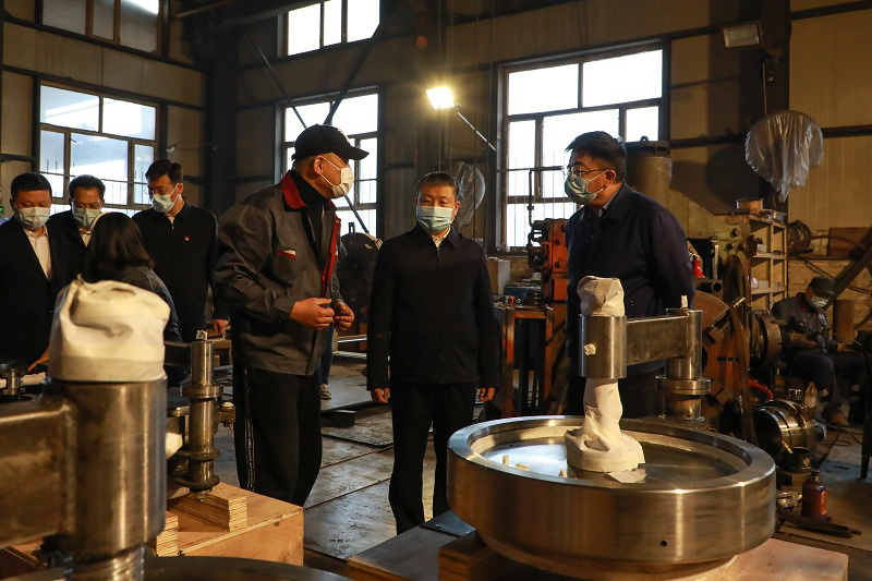 在牡丹江市金環(huán)石化設(shè)備有限公司,高忠遠(yuǎn)同志深入生產(chǎn)車(chē)間檢查安全生產(chǎn)、隱患排查、疫情防控等措施落實(shí)情況,向企業(yè)員工宣講省十三次黨代會(huì)精神,并認(rèn)真聽(tīng)取企業(yè)歷史沿革、生產(chǎn)經(jīng)營(yíng)、經(jīng)濟(jì)效益等情況介紹,了解企業(yè)發(fā)展面臨的問(wèn)題和困難,對(duì)企業(yè)安置殘疾人就業(yè)給予充分肯定和高度贊譽(yù)。他指出,金環(huán)石化是由國(guó)有企業(yè)轉(zhuǎn)制而來(lái)的股份制民營(yíng)企業(yè),是目前國(guó)內(nèi)唯一一家專門(mén)生產(chǎn)快開(kāi)盲板的廠家,產(chǎn)品銷(xiāo)售全國(guó)各省、市、自治區(qū)以及各大油田,并遠(yuǎn)銷(xiāo)東南亞、中東地區(qū),是我市優(yōu)秀民營(yíng)企業(yè)的代表和典范。他強(qiáng)調(diào),推動(dòng)牡丹江全面振興全方位振興,工業(yè)要率先振興。企業(yè)要在學(xué)習(xí)貫徹省十三次黨代會(huì)精神上下真功夫、實(shí)功夫,按照省黨代會(huì)關(guān)于“八個(gè)振興”,特別是產(chǎn)業(yè)振興和 “換道超車(chē)”部署要求,搶抓新一輪科技革命和產(chǎn)業(yè)變革機(jī)遇,勇于創(chuàng)新、敢于突破,切實(shí)把省黨代會(huì)精神轉(zhuǎn)化為指導(dǎo)生產(chǎn)、推動(dòng)企業(yè)發(fā)展的強(qiáng)大動(dòng)力。要全面落實(shí)安全生產(chǎn)主體責(zé)任,牢固樹(shù)立紅線意識(shí)、底線思維,建立健全全員安全生產(chǎn)責(zé)任制,進(jìn)一步筑牢安全防線。他要求,轄區(qū)黨委政府特別是相關(guān)部門(mén)要以“能力作風(fēng)建設(shè)年”活動(dòng)為契機(jī),針對(duì)企業(yè)發(fā)展痛點(diǎn)難點(diǎn),不斷深化紓困解難措施,用心用情用力當(dāng)好企業(yè)發(fā)展服務(wù)員。屬地公安機(jī)關(guān)要充分發(fā)揮職能作用,依法嚴(yán)厲打擊妨礙企業(yè)生產(chǎn)經(jīng)營(yíng)違法犯罪活動(dòng),常態(tài)開(kāi)展安全生產(chǎn)、疫情防控工作督導(dǎo)指導(dǎo),全力保障企業(yè)合法權(quán)益和安全生產(chǎn)。