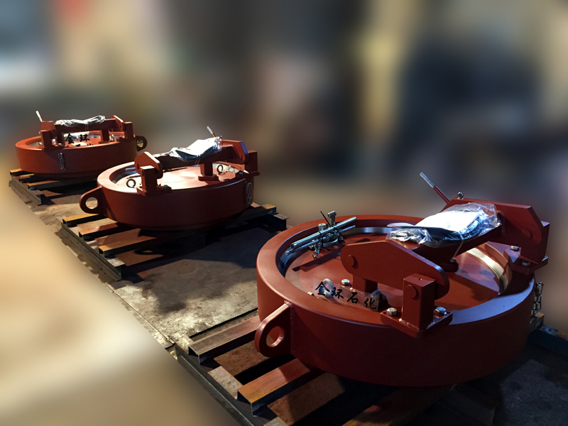 快開盲板是壓力容器快開門蓋的一種型式,廣泛應用在天然氣領域中的需經常啟閉的設備上。常用的快開盲板分為牙嵌型、卡箍型、插扣型、鎖環(huán)型、漲環(huán)型、固定壓力環(huán)型等典型的結構,以手動操作為主。