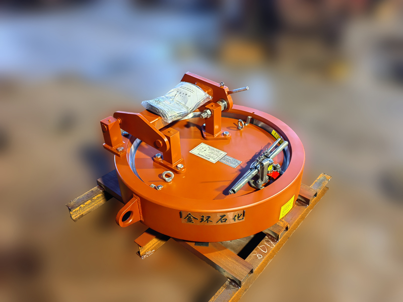 快開盲板是用于壓力管道或壓力容器的圓形開口上的一種機械裝置。一般由筒體法蘭、頭蓋、勾圈或卡箍、密封圈、安全聯(lián)鎖機構(gòu)、開閉機構(gòu)、轉(zhuǎn)臂及短節(jié)(需要時)等部件構(gòu)成。